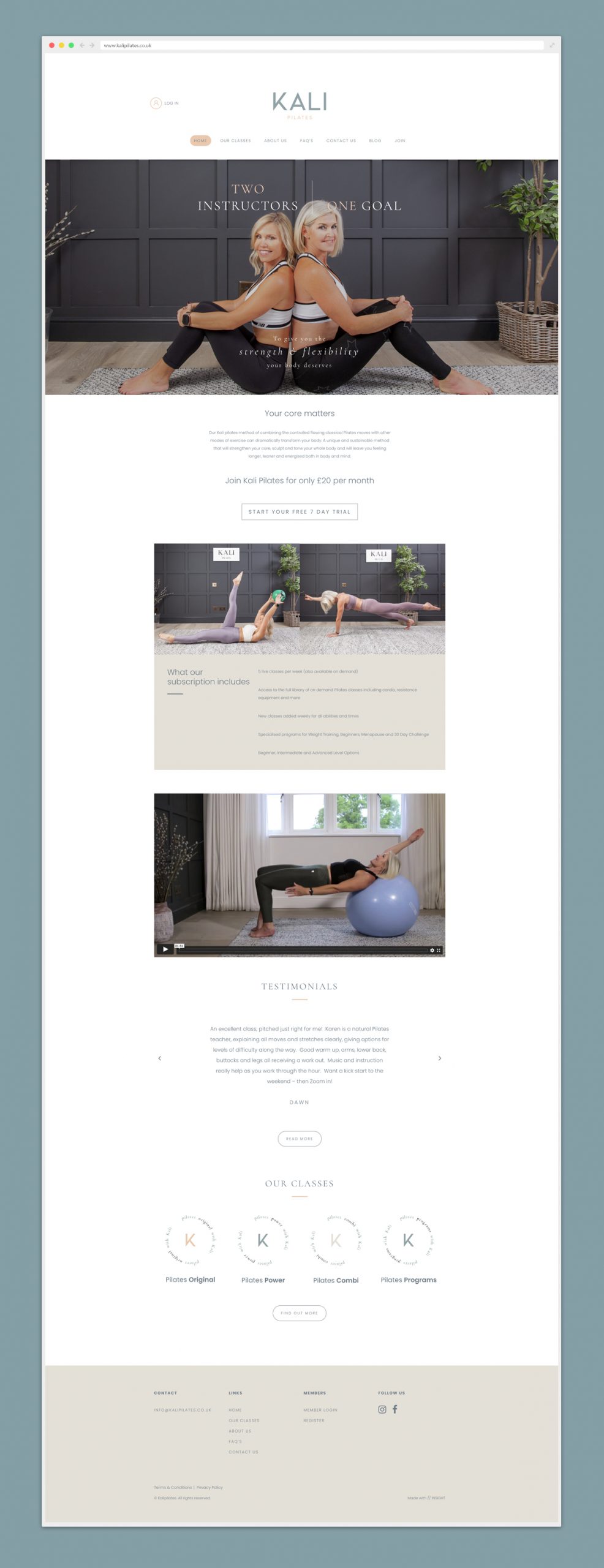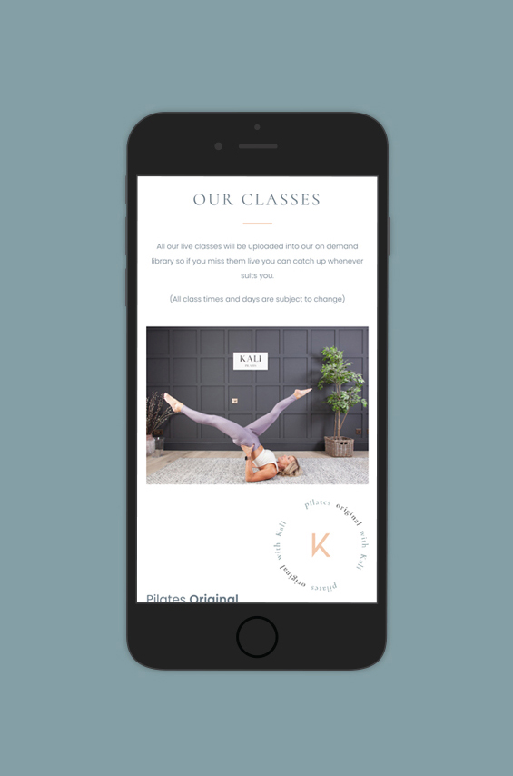 New website and logo brand for Kali Pilates, incorporating membership sign up, on-demand and live classes.
