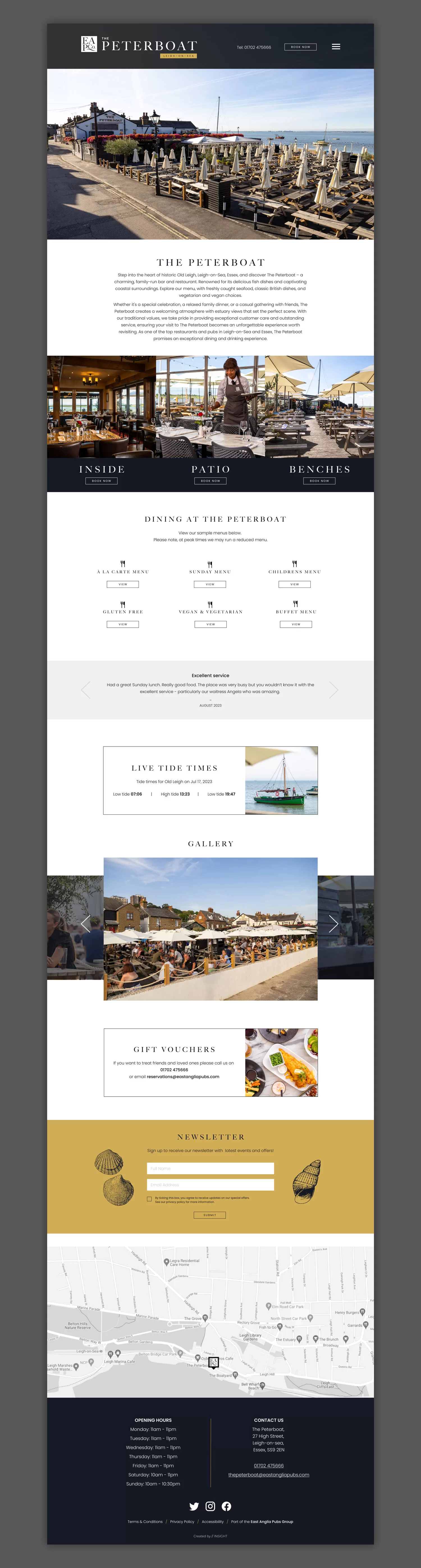 New logo refresh, website, photography and drone footage for The Peterboat, Leigh-on-Sea.